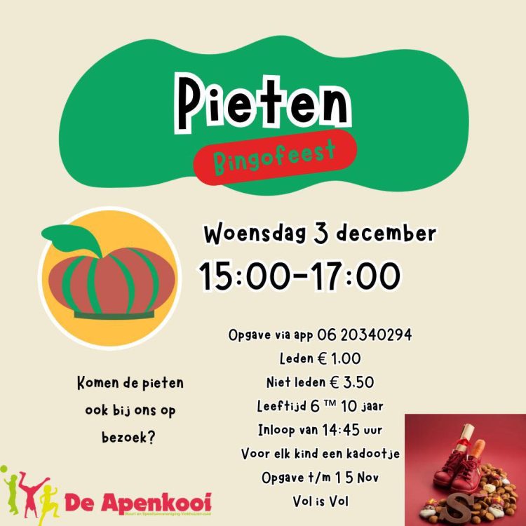 Pieten Bingo!Leeftijd: 6 t/m 10 jaarVoor elk kind een cadeautje! En wie weet… komen de Pieten ook langs