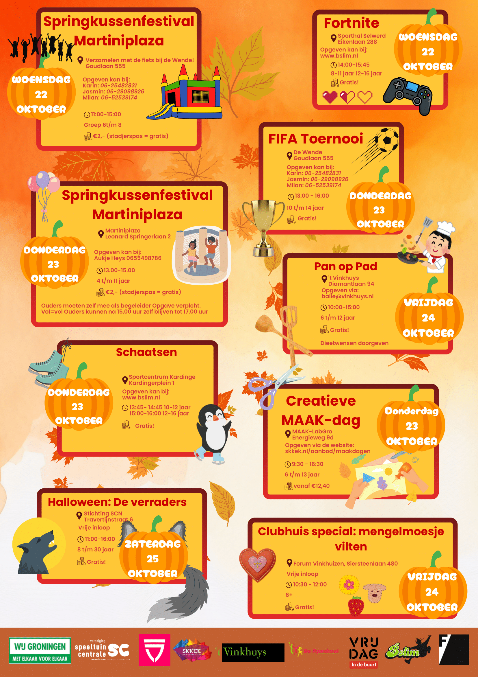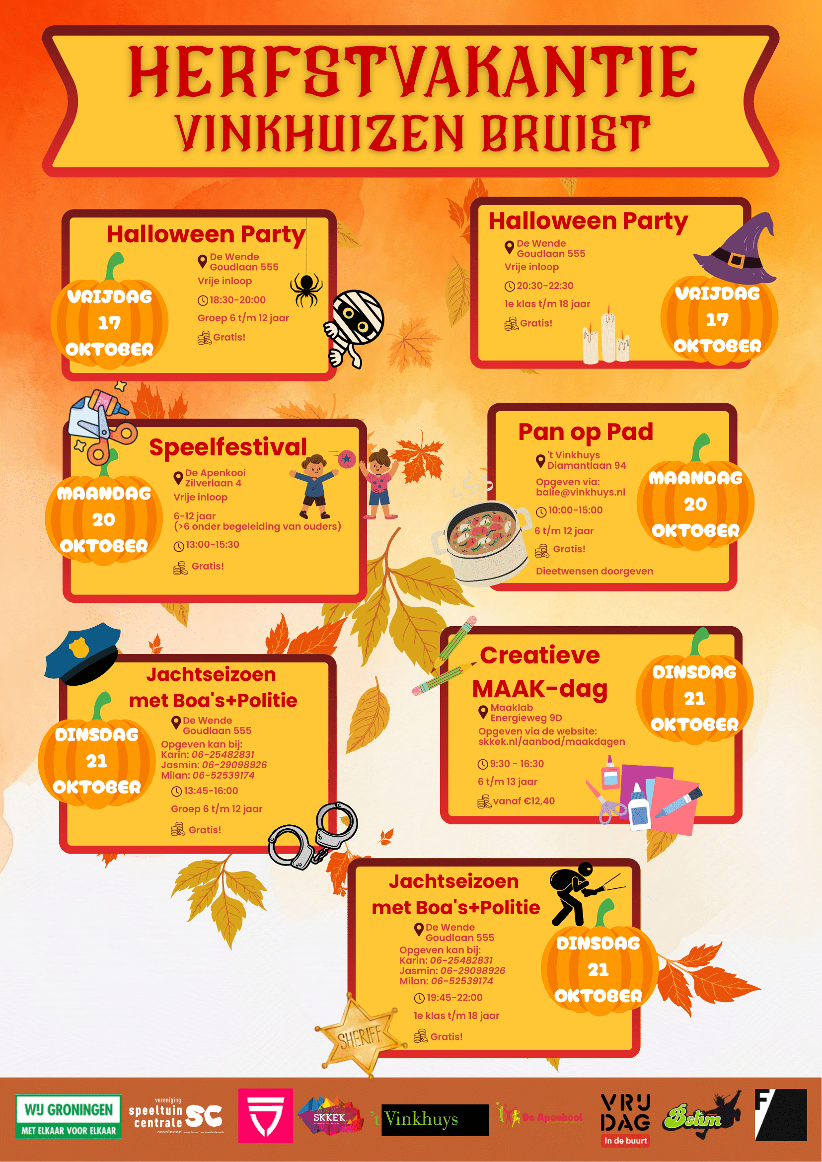 Vinkhuizen Bruist! Doe mee met leuke activiteiten tijdens de herfstvakantie. Door de hele wijk heen zijn er leuke, actieve en creatieve dingen bedacht. Kom je ook?